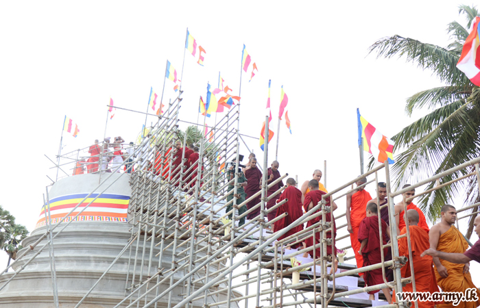 The enshrinement of sacred relics in the newly-erected pagoda (stupa), 'Kalana Mithuru' at Sri Samiddhi Sumana Viharaya in Navatkuli, Jaffna took place on Saturday (13) amid a large gathering of devotees and invitees.