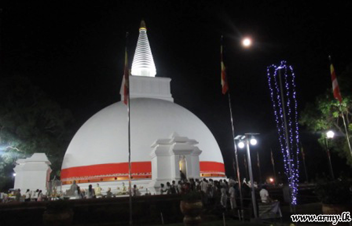 Sri Lanka Army added their share to this historical event by organizing a colourful display of lanterns in addition to the security arrangements of the premises. The display was opened by Ven. Pahamune Sri Sumangala Nayake Thero, the Chief Incumbent at Somawathiya Rajamaha Viharaya, Mr. Gamini Jayawickrama Perera, Minister of Buddha Sasana and Lieutenant Colonel Priyantha Wijekoon, Chief Coordinator Civil Affairs SFHQ (E).