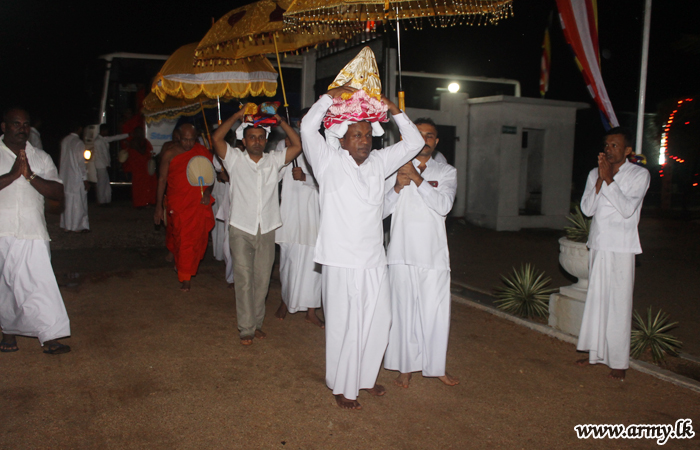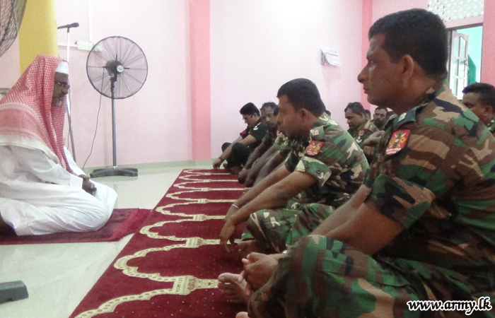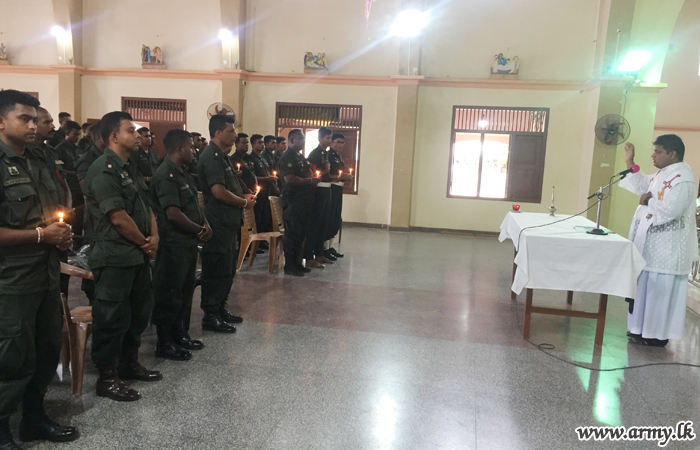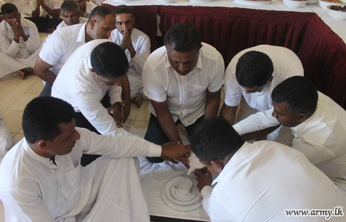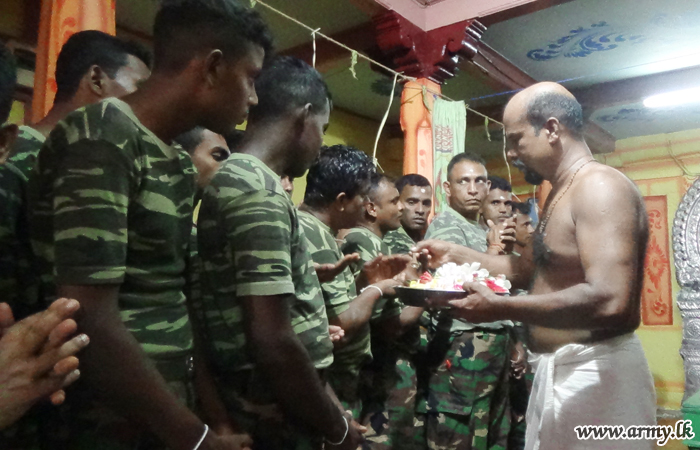 The whole night 'Pirith' chanting held on the same evening (19) ended the following morning offering alms to the Maha Sangha. Similarly, a Catholic Mass organized by the troops at St Thomas's Church, Point Pedro, a Special Hindu Pooja at Pillaiyar Kovil, Point Pedro and prayers at Mohideen Jumma Mosque, Point Pedro blessed the Brigade and the troops on its anniversary.