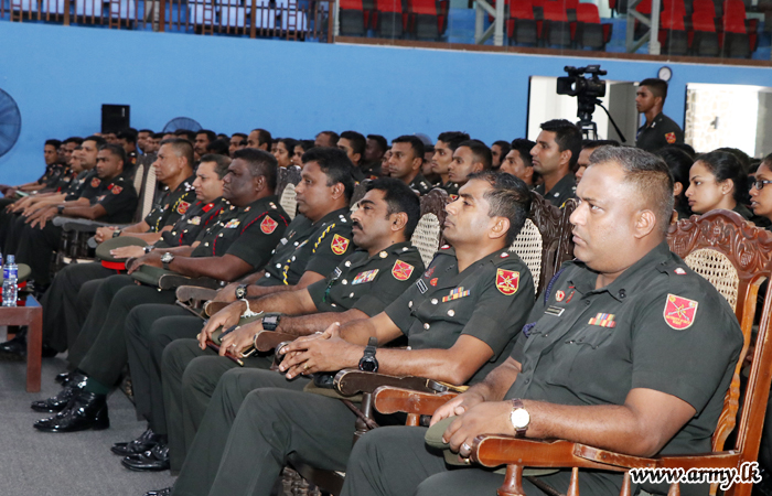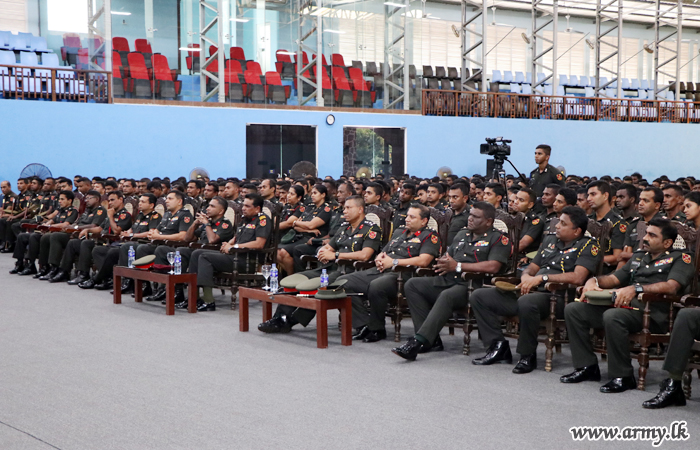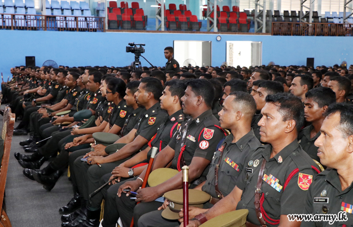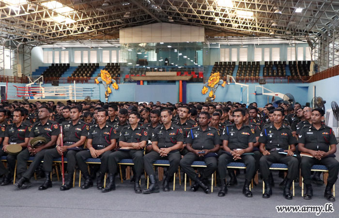 The newly-appointed Commander, Security Forces-West (SF-West), Major General Mahinda Mudalige addressed the troops under command to the SF - West on Wednesday (24) at the Panagoda Army indoor stadium as a part of a military formality.
