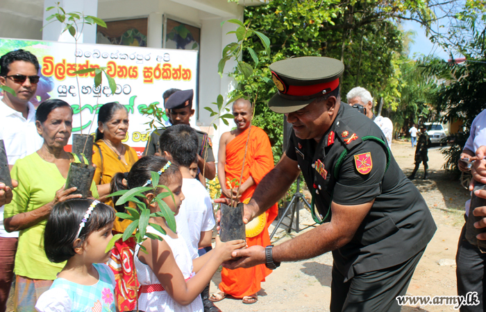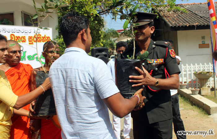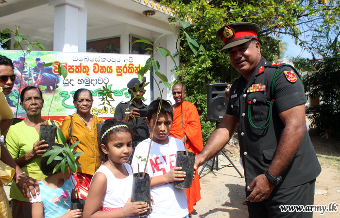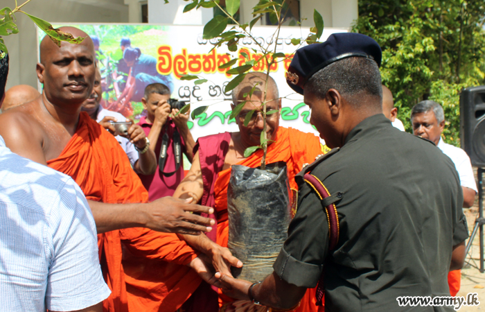 The growing enthusiasm, interest and the public support evolving for the Army’s Wilpattu Reforestation Programme under the ‘Thuruliya Wenuwen Api’ Project of the Army, pioneered by the Commander of the Army became clearly evident once again on Sunday morning (28) when members of the '17 Group of Volunteer Organization' gifted 1000 more valuable saplings to Major General Chula Abenayake, General Officer Commanding (GOC), 14 Division at the Community hall in Obesekarapura, Rajagiriya.