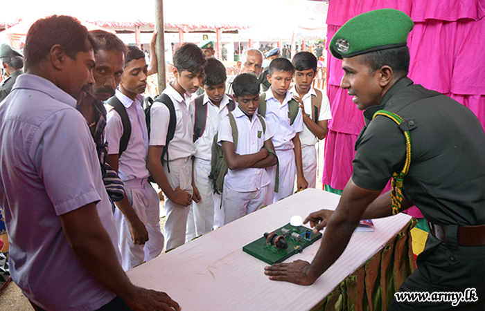 Senior Officers, Officers representing all under command formations to the Security Forces in the Wanni, Officials of several Government Institutions, students from many schools in nearby areas and a large number of civilians visited the exhibition site on all two days. |