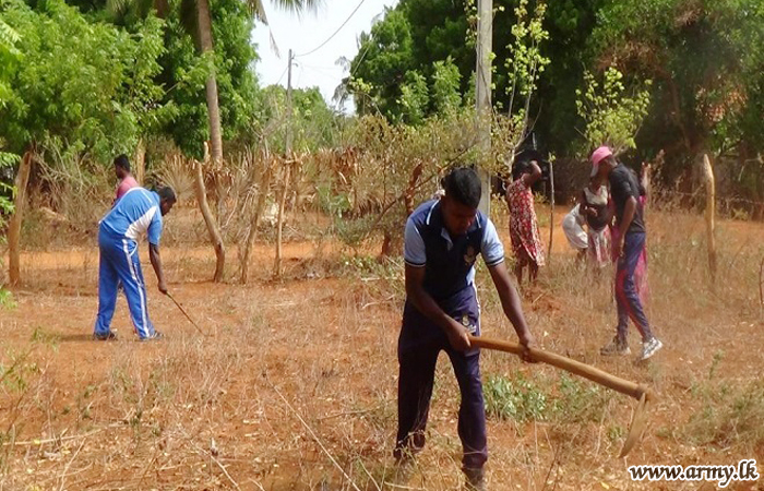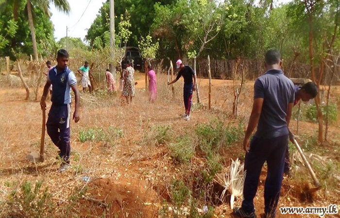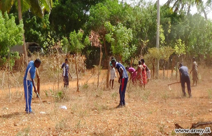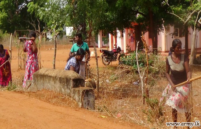 Ten soldiers of the 19 Sri Lanka Light Infantry with 25 civilians carried out a Shramadana work on Monday (29) to clean the Kaneshapuram Community center and its surroundings at Kaneshapuram in the general area of Mallavi.