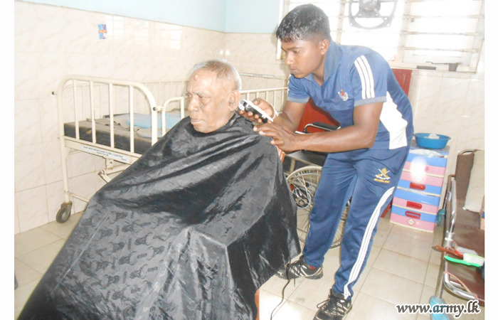 At first, troops cleaned up the surroundings and bathed all the inmates after shaving them thoroughly and cutting their hair with the support given by members of the staff. Afterwards, all of them were provided with refreshments and a hearty lunch.
