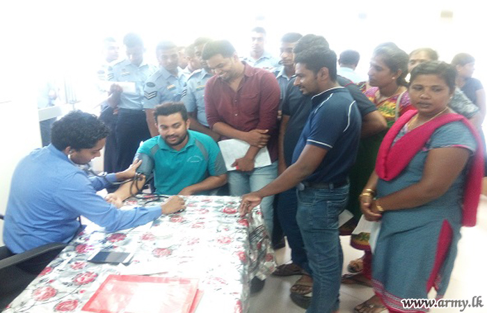 60 Army personnel including 6 Officers volunteered to offer their blood to patients in Kilinochchi Hospital on Thursday (01) when the Bank of Ceylon Kilinochchi branch held a blood donation to mark its anniversary.