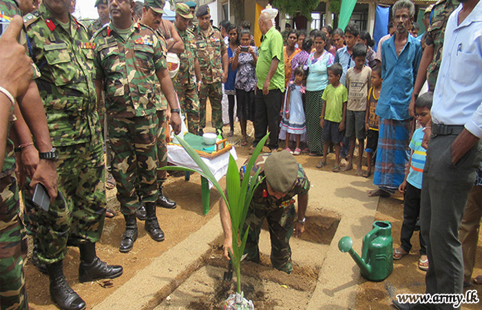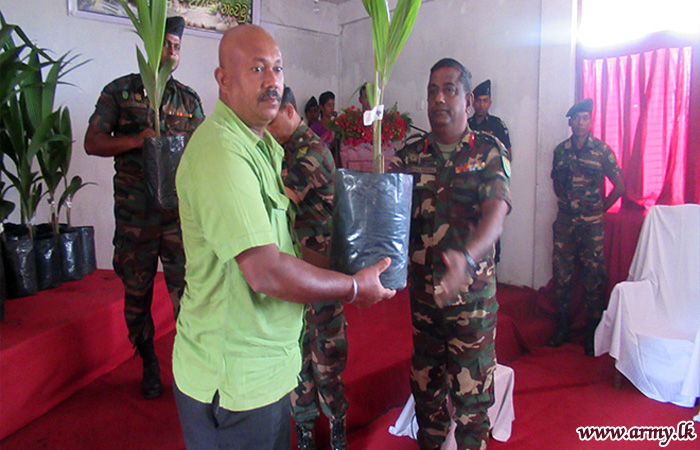 Maliban Biscuit Manufacturers (Pvt) Limited in appreciation of the Army's ongoing tree-planting drives distributed over 1000 coconut saplings among underprivileged families in Vavuniya and Kokeliya areas on Sunday (4) following the coordination done by the Army's 56 Division.