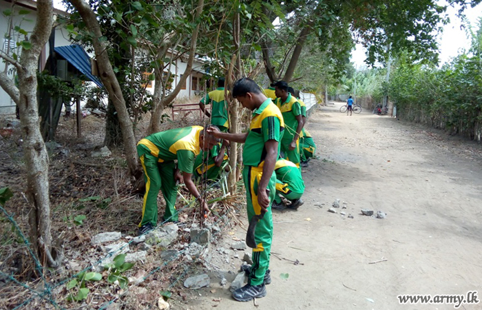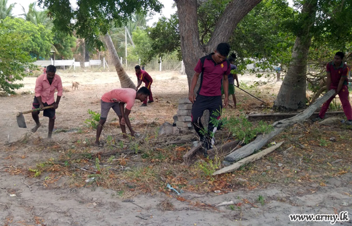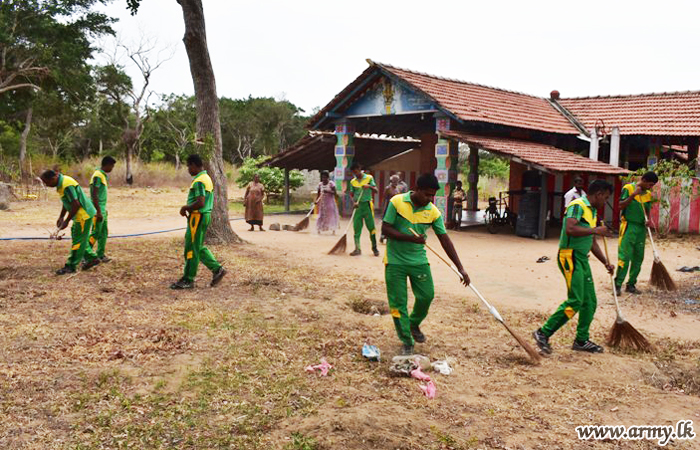 Troops of 11 the (V) Gajaba Regiment of the 651 Brigade organized a Shramadana campaign to clean the Kariyalanagapadduwan Virawan Kovil premises, Don Bosco Pre-School premises and Nachchikuda Grama Seva office premises.