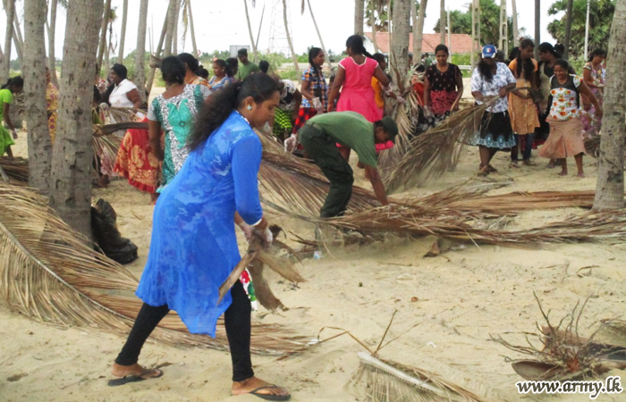 Under the guidance of Colonel W.B.J.K Wimalaratna, Commander, 241 Brigade, Civil Coordinating Officer, Major U.L.C Jayasena and Major G.R.A Punyasiri led the cleaning programme with soldiers. A crowd of more than 450 people from Alayadiwembu and Akkaraipattu areas participated in the project.