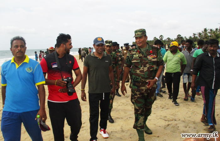 Officers and soldiers of the 241 Brigade, two Police Officers from Akkaraipattu Police Station, Officers of the Divisional Secretariat at Alayadiwembu and Akkaraipattu, Municipal Council Akkaraipattu, Alayadiwembu and Akkaraipattu Pradeshiya Sabha, Mr K.M Rifaz, the Engineer of Coastal Conservation Department, Ampara District, Mr Saman Rajapaksha from Kolavil Sports Club and several prominent community leaders joined the drive. |