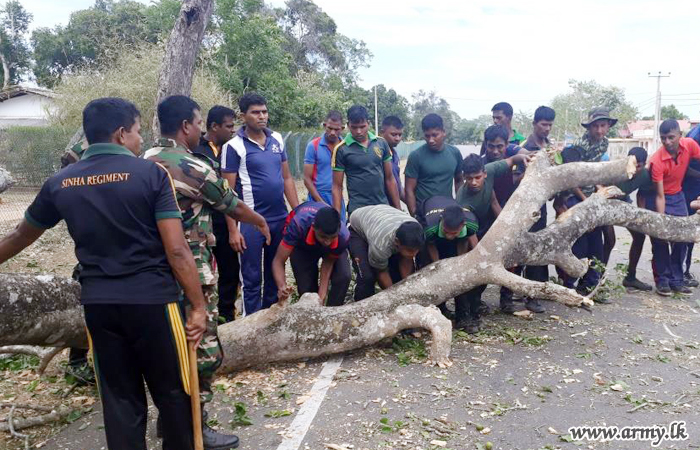 The A-34 road which runs through the 64 Division area under the Security Force Headquarters – Mullaittivu turned fully impassable after gushing winds forced the fall of a huge tree recently blocking the passage of traffic in the general area of Oddusudan.