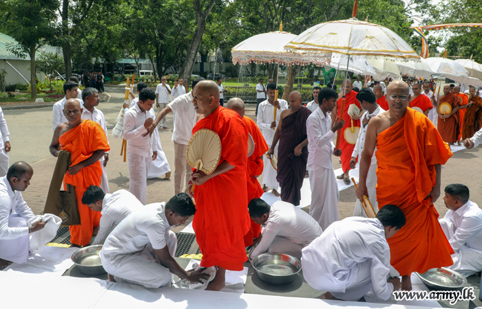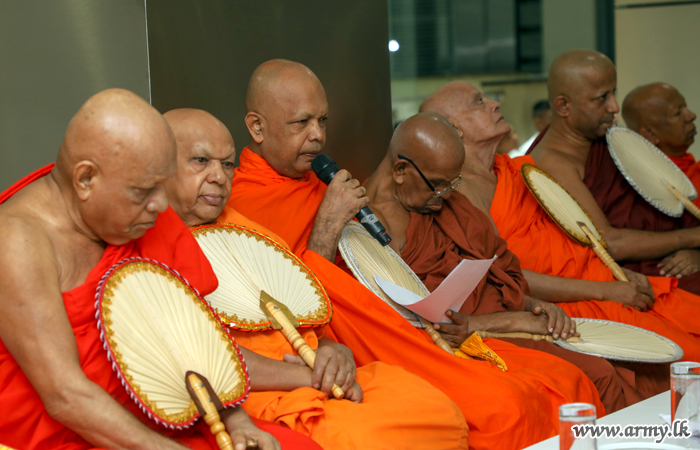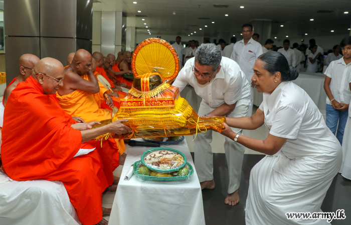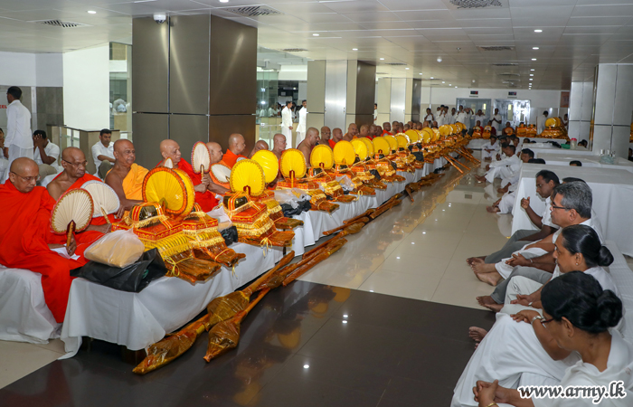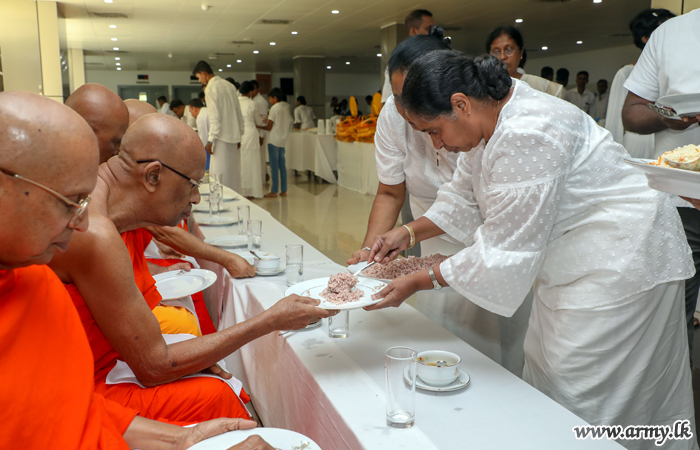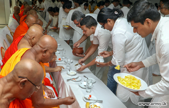 Most Ven Diviyagaha Yasassi Nayake Thero, Chief Sangha Nayake for Nawakoralaya, Ven Wahumuwe Wijewansa Nayake Thero and leading Buddhist monks joined the alms-giving at the invitation of Major General Sanjeewa Munasinghe.