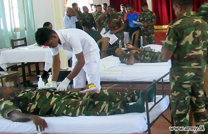 To coincide with the 24th anniversary celebration of the 52 Division of the Security Force Headquarters-Jaffna, troops serving all formations under the 52 Division donated their blood on Thursday (15) under the guidance of Brigadier Sena Waduge, General Officer Commanding 52 Division.