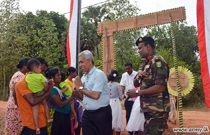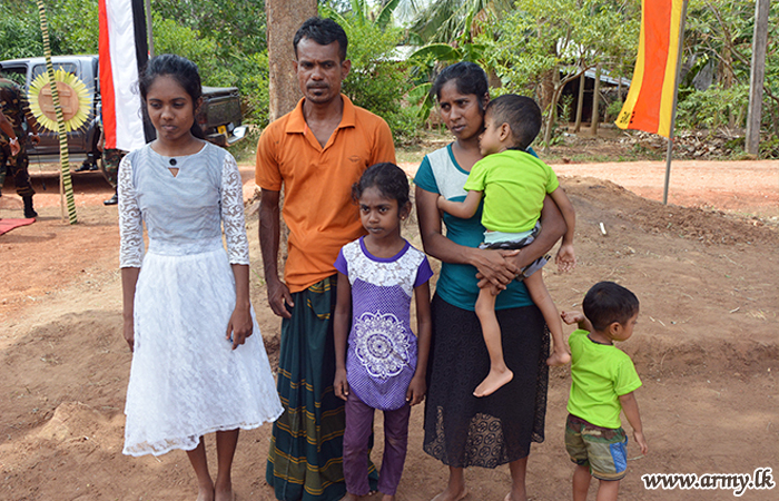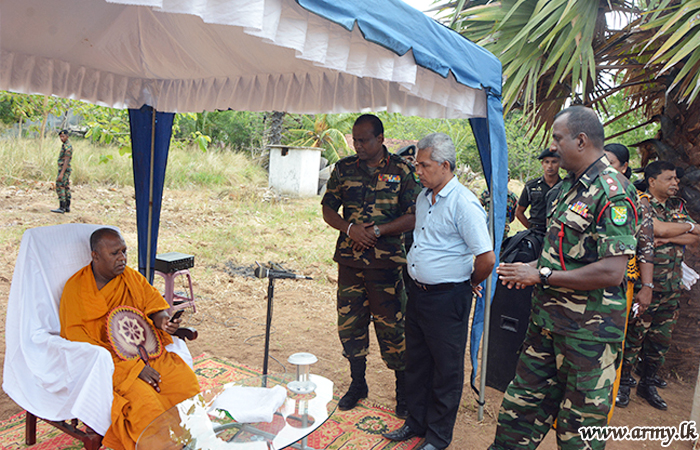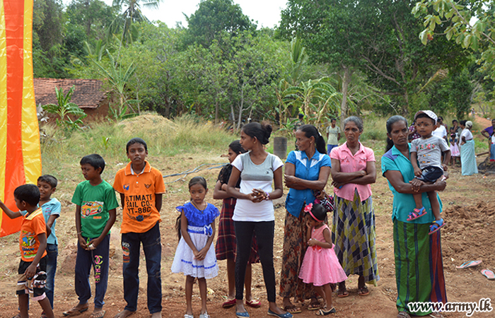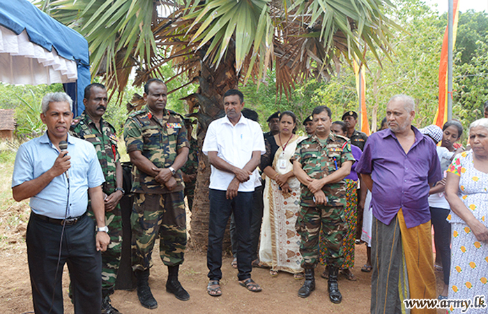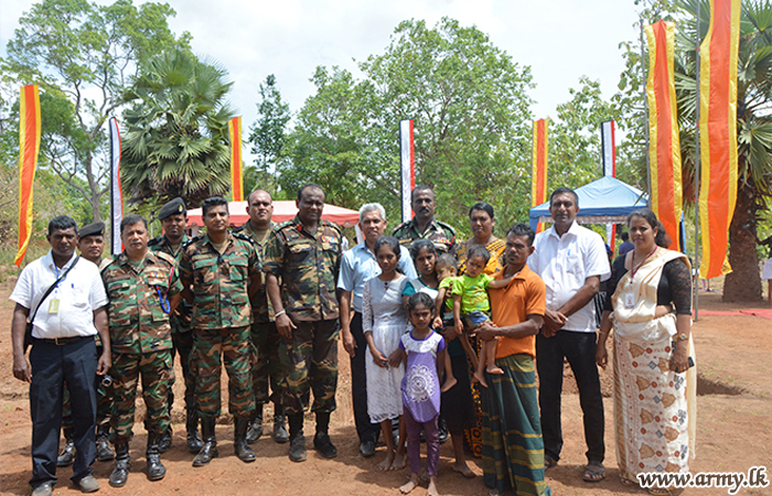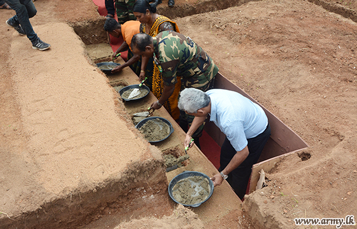 The General Officer Commanding - 21 Division Major General Kumar Jayapathirane gracing the occasion as the Chief Guest on behalf of the Commander, SF Wanni, together with Mr Anura Dorakumbura, representative of Independent Television Network, Mr Jayantha Sri Rathnayake, Divisional Secretary, Colonel Anil Peiris, Commander 212 Brigade, senior military officers, the beneficiary, together with his family and villagers attended the cornerstone-laying ceremony.