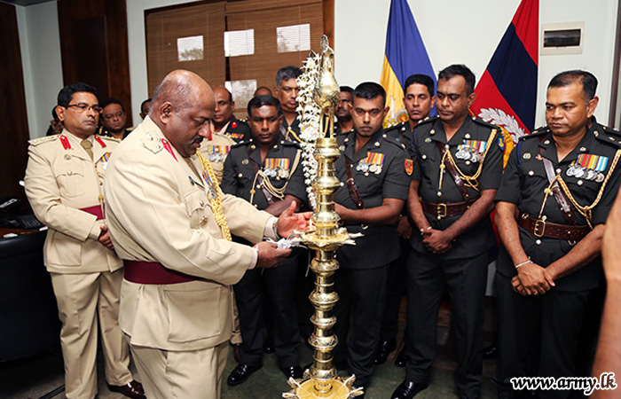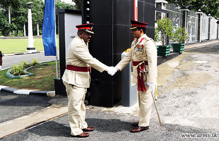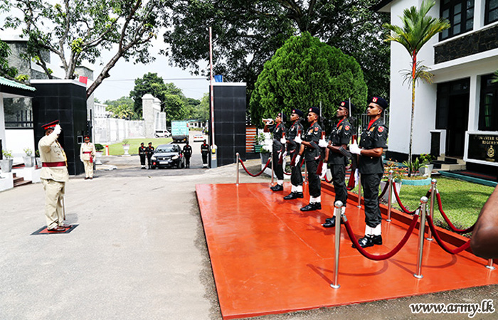 The newly-appointed Colonel Commandant was greeted to a Guard Turnout by the troops on arrival. The Centre Commandant, CES, Colonel K.M.S Kumara welcomed him at the main entrance.