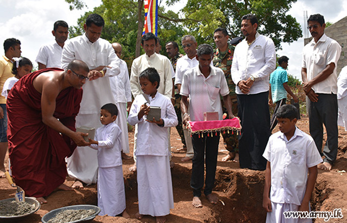 The ceremony of laying the foundation stone to construct the Pagoda and commencement of the renovation of the tank was graced by General Officer Commanding, 21 Division, Major General Kumar Jayapathirana on behalf of the Commander, Security Forces - Wanni.