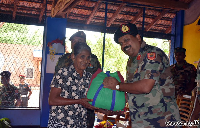 Troops of 12 Division in Hambanthota under the Security Force Headquarters-Central coordinated the distribution of dry ration packs among 100 needy families on Thursday (20) at Weerawila Primary School, Tissamaharama following sponsorship, provided by one Mr K.S Kandarajah, a philanthropist in the area.