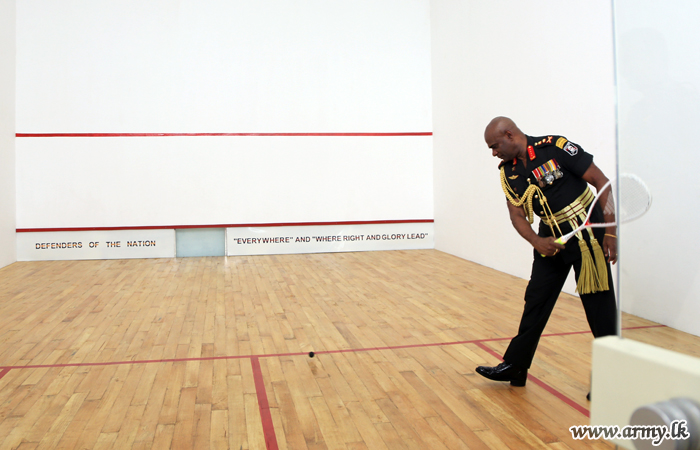 On the sidelines of his mother regiment's farewell, the former Commander of the Army General Mahesh Senanayake on Friday (23) ceremonially opened the upgraded and completely renovated the Squash Court in the Sri Lanka Engineers (SLE) Regimental Headquarters in Mattegoda.