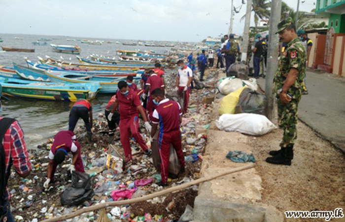 District Secretary for Jaffna, Mayor of Jaffna, Commander 512 Brigade, Commanding Officer Sri Lanka Navy of Velusumana Camp, Army and Navy troops, Officials from the Divisional Secretary’s Office - Jaffna, Urban Council - Jaffna, Coastal Guard Authority, School Cadets and villagers in the area joined hands together with civilians to make the area neat and tidy. |
