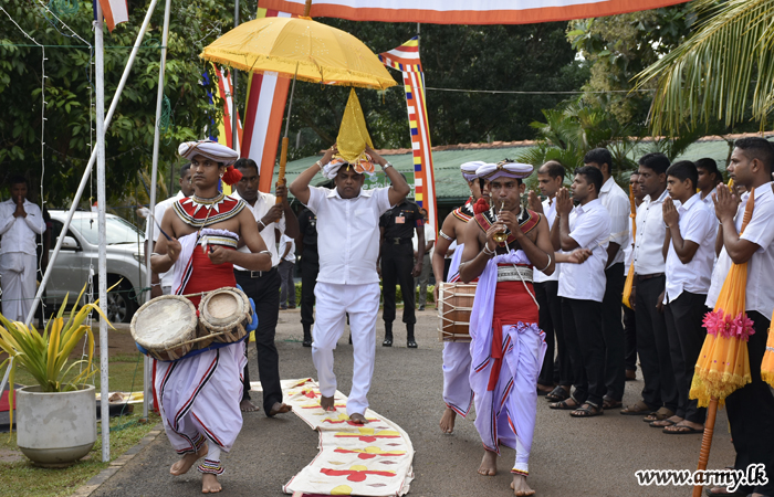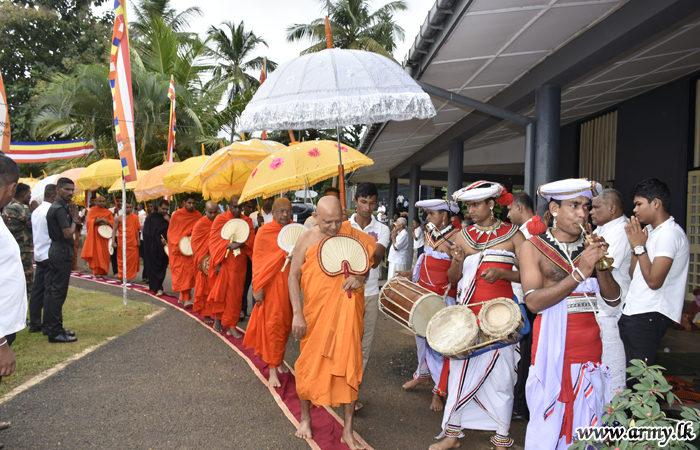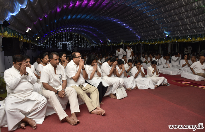 Subsequently, religious services representing Catholic, Hindu and Islamic faiths got underway at separate sacred places in Warakapola. The ceremony terminated with an overnight ‘Pirith’ chanting followed by an alms-giving to members of the Maha Sangha on Sunday (25) morning. 24 Buddhist monks attended the alms-giving.