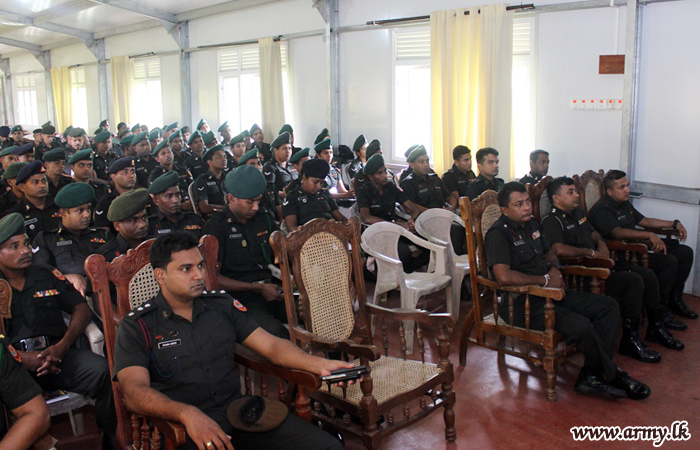 11 Officers and 125 troops of under command establishments of the 11 Division of the Security Force Headquarters - Central at the 11 Division Headquarters in Kundasale listened to a lecture on 'Powers, related to dispersing of unlawful assemblies, Right to Self Defence and Powers available to the Armed Forces' on Wednesday (28).