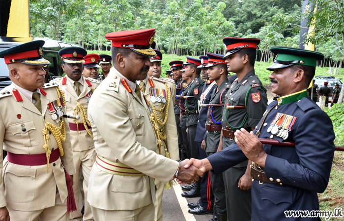 The series of military formalities in this connection commenced with the review of the Guard Turnout salute at the entrance to the SLAVF Headquarters. He was received by Major General L.F Kasthuriarachchi, the SLAVF Deputy Commandant and ushered to the saluting dais in the parade ground to receive the salute in the Guard of Honour, presented by colourfully dressed SLAVF troops.