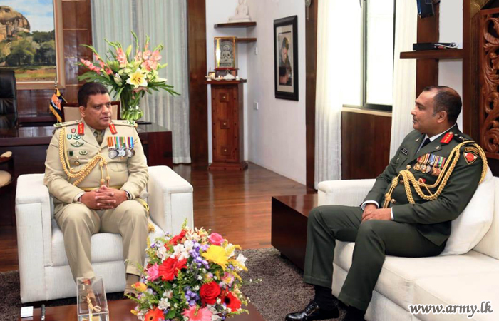 Having received him at the entrance to the Commander’s Secretariat, Major General Ruwan De Silva, Military Secretary afterwards conducted him to the Commander’s Office where brief cordial discussions ensued.