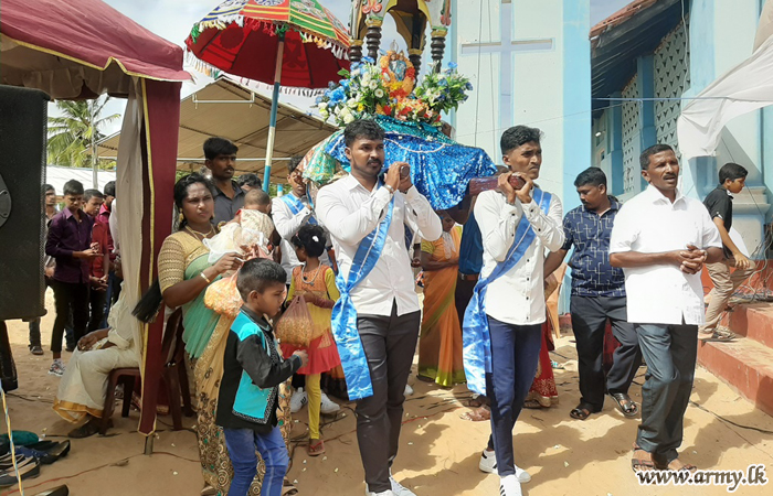 Troops put up church flags and erected tents and took steps to provide drinking water to more than 1200 devotees who attended the feast.