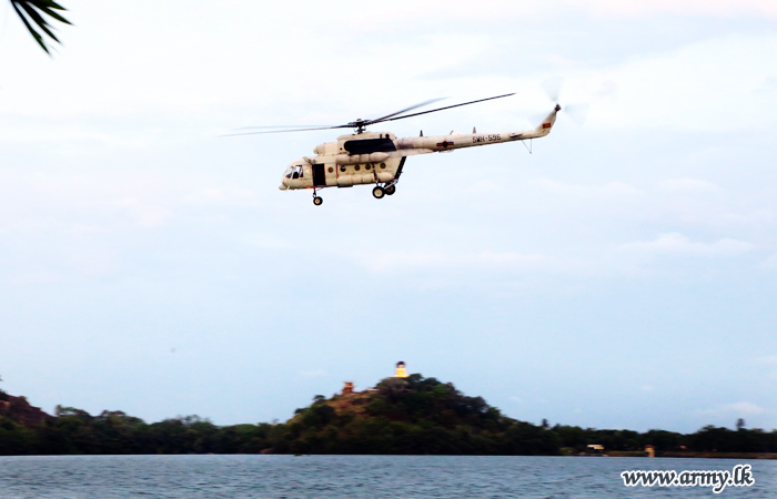 3 Commando Regiment troops, skilled in Halo Casting and Combat Diving techniques, Sri Lanka Navy’s 4R Life-saving Unit, together with the assistance of one MI 17 Helicopter of the Sri Lanka Air Force in covert operations reached the islet secretly and secured the release of hostages unharmed after gunning down all 6 terrorists, including their leader, Rambo, who were holding them incommunicado.