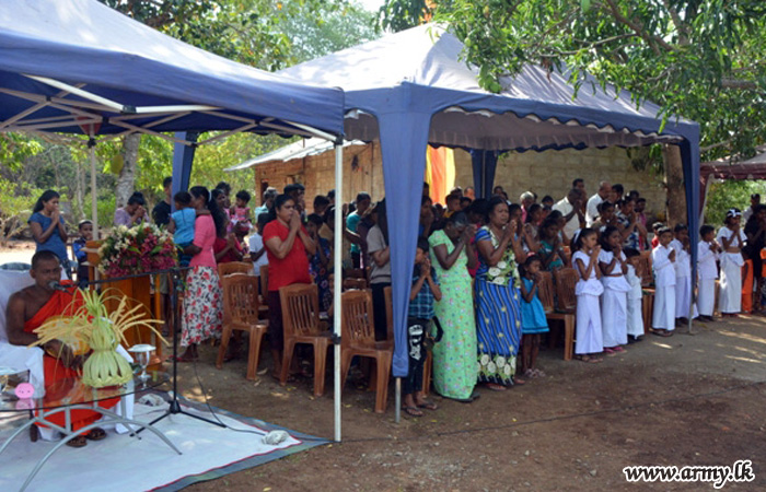 After religious observances, the key to the house was auspiciously handed over to the head of the household during a brief ceremony by the Commander, SF-W, Major General Jagath Gunawardena who graced the occasion as the Chief Guest.
