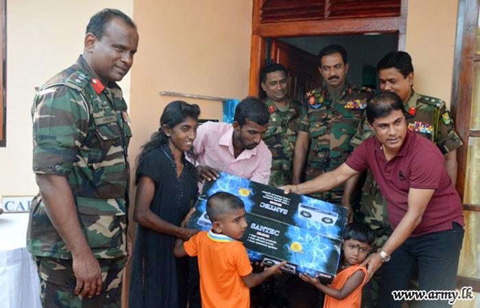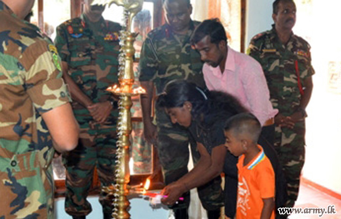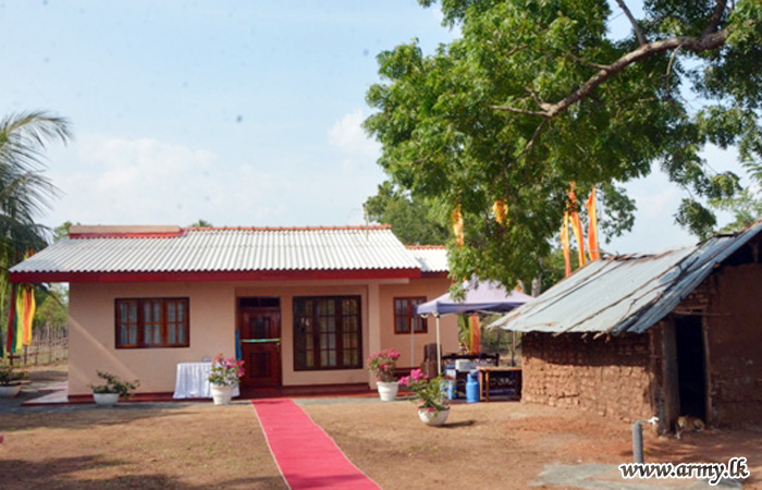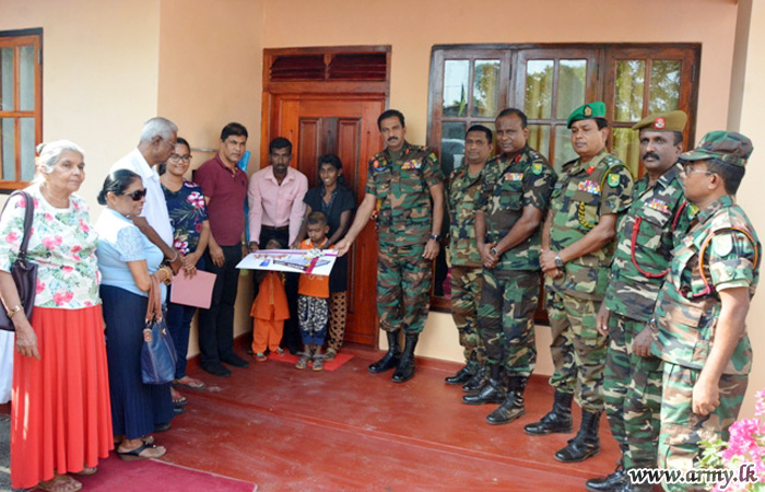 One more new house for a needy Wanni family, constructed by troops of the 2 (V) Vijayabahu Infantry Regiment (VIR) of the 211 Brigade with the guidance of the Commander 211 Brigade, Brigadier Lal Wijethunge and under the supervision of the General Officer Commanding (GOC), 21 Division, Major General Kumar Jayapathirana was vested in the beneficiaries on Tuesday (10).