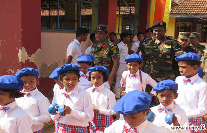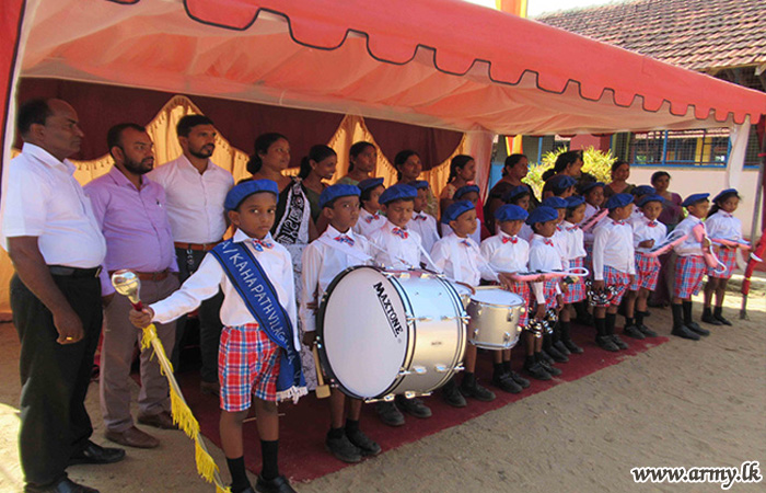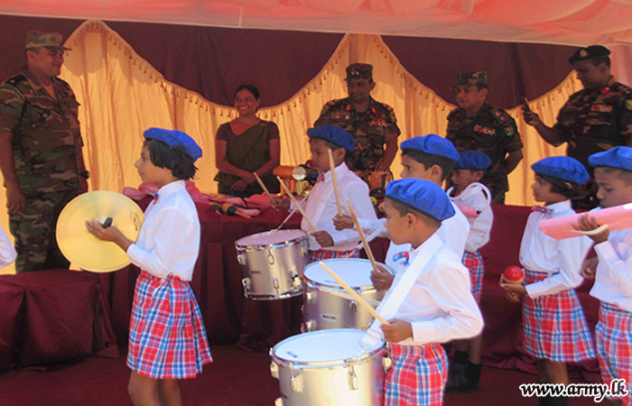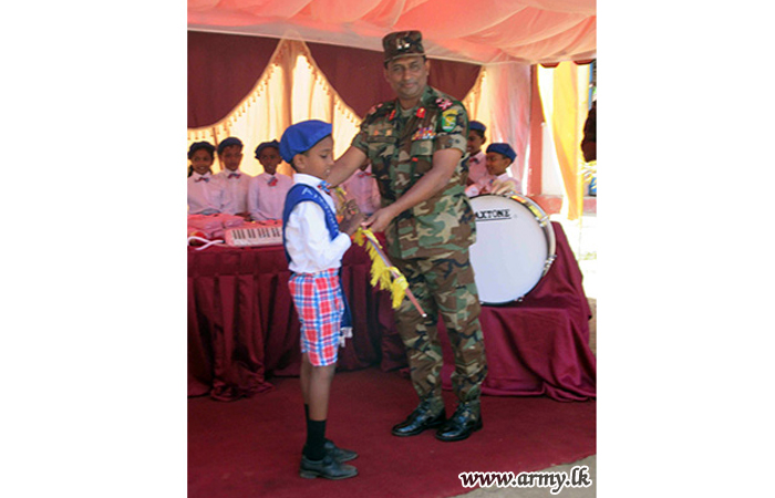 Troops of the 21 Division under the supervision of the General Officer Commanding, 21 Division, Major General Kumar Jayapathirane coordinated a donation programme to supply musical instruments to students at Kahapathvilagama Primary School at Galkulama in Kekirawa with the sponsorship, provided by Mr Lal Kudagama, a businessman in gems.
