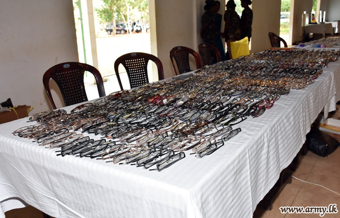 In response to a request made by Major General Vijitha Ravipriya, Commander, Security Forces - Kilinochchi, the Association of Ophthalmic Opticians of Subhuthipura - Battharamulla donated a stock of spectacles to the needy people in Kilinochchi district during an Eye Clinic organized by the Security Force Headquarters - Kilinochchi (SFHQ-KLN) at the Nelumpiyasa auditorium premises on Saturday (14).