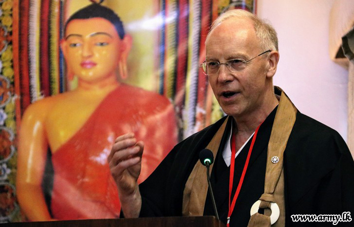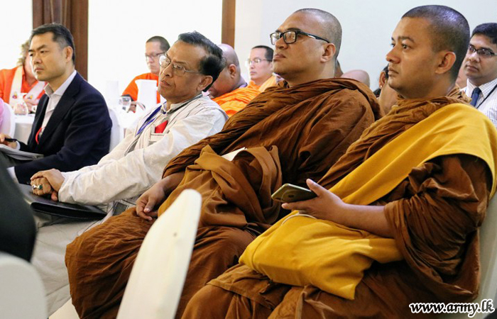 Lieutenant Colonel Nalin Herath, Staff Officer 1 at 14 Division of the Security Force Headquarters - West (SFHQ-West) in his presentation to the sessions talked on the topic, “Which Buddhist teachings & Traditions are Most Relevant to International Humanitarian Law and Situations of Armed Conflict ?” and received the attention of the attendees. More than 40 academic papers, submitted to the forum discussed how Buddhist teachings in parallel with fast changing technologies could actually be applied in high-stress armed conflict situations.