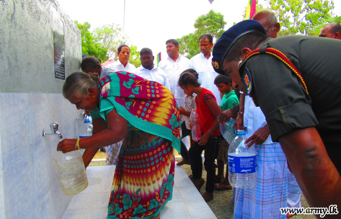 The SSIO spent about Rs 1.7 million for the project considering its humanitarian requirement in close contact with the 23 VIR unit, 642 Brigade and the 64 Division of the SFHQ-MLT. The commissioning of the water purification system on Friday (13) at Panneininddam was attended by Major General W. D. C. K Costa, General Officer Commanding, 64 Division and Mr V. Manoharan, Chairman, SSIO as Chief Guests for the occasion, together with the Commanding Officer, 23 VIR, Grama Seva Officials, Civilians, Officers and a large gathering of beneficiaries.