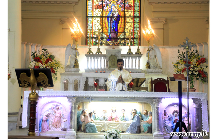The divine Mass, conducted by Rev Father Asitha Hettiarchchi invoked blessings on the country and prayed for the wellbeing of all Sri Lankans, members of the Armed Forces and recuperating War Heroes.