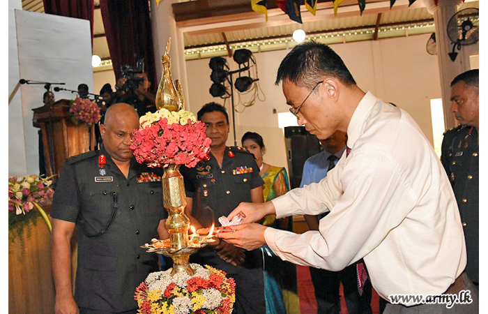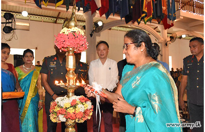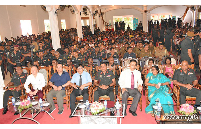 The arrangement at 'Nelum Piyasa' auditorium was graced by the District Secretary for Mullaittivu, Ms R. Ketheeswaran, together with the General Officer Commanding 65 Division, Major General Wasantha Kumarapperuma, General Officer Commanding 57 Division, Major General B P S de Silva, General Officer Commanding 66 Division, Brigadier M. D Wijesundara, Senior Officers, Officers and Other Ranks. |