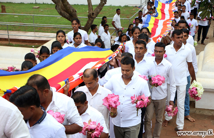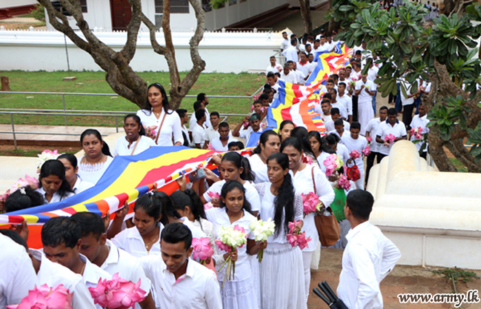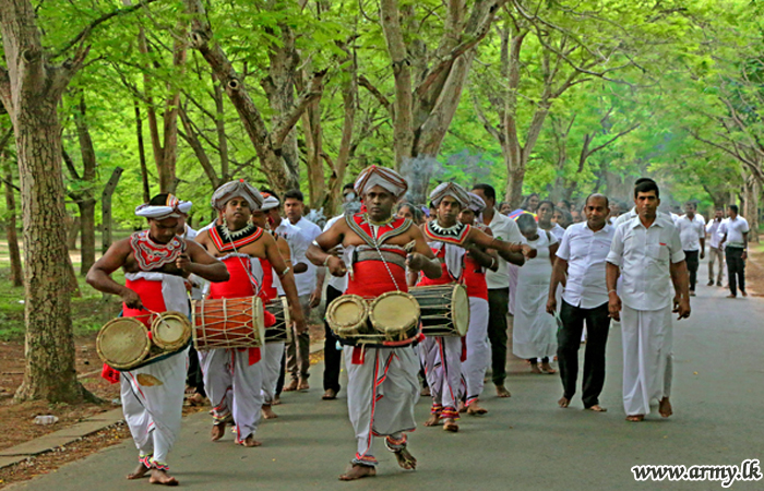 Afterwards, the participants joining traditional ‘Kawadi’ dancing and ‘Hevisi’ groups walked together up to the Devala premises and made offerings.