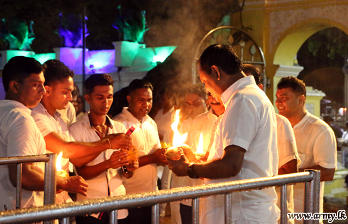 On the following day (21) morning, on their way back to Camp from Kataragama, participating troops stopped for a short while on the banks of Chandrika reservoir in Embilipitiya and enjoyed a bath with their colleagues, supervisors and managers at all levels, amid music provided by the RVAPL musicians.