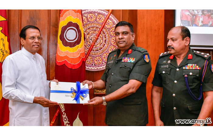 Lieutenant General Shavendra Silva, Commander of the Army extending the Army cooperation for this worthy cause, through which island-wide destitute children and those youngsters with special skills are to be protected and nurtured for a better future, directed the Director General General Staff at the Army Headquarters, Major General Rohitha Dharmasiri to deliver this appreciative donation to HE the President on his behalf at the Presidential Secretariat.