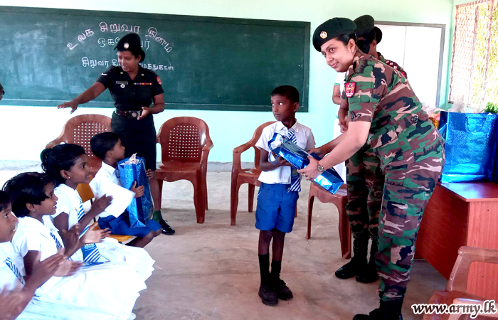 Deserving students at the Urani Primary School in Mailady received school accessories and stationery, following an initiative taken by the Commanding Officer of 7 Sri Lanka Women’s Corps (SLAWC) of the Security Force Headquarters - Jaffna (SFHQ-J).