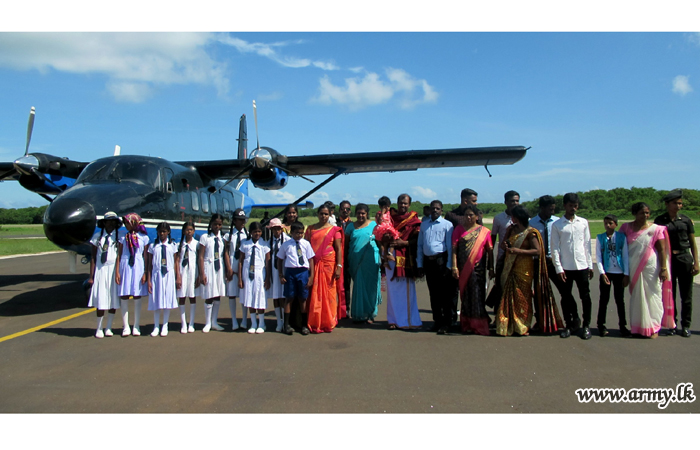 A total of 70 students along with their teachers and parents joined the visit to the Palaly Airport. The students were gifted with stationery packs before providing a sumptuous lunch at the Army-managed Thalsevana Army Holiday Resort. After lunch, they watched a children’s movie and enjoyed the hospitality of the holiday resort.