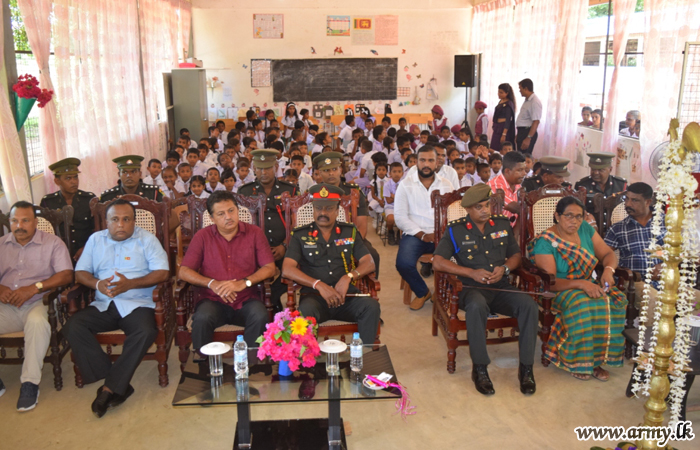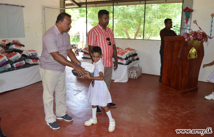 621 Brigade at Welioya launched a school equipment donation programme for underprivileged students in the D5 Primary School at Wahalkada on Friday (4) under the close supervision of Major General J.M.U.D Jayasinghe, General Officer Commanding (GOC), 62 Division.