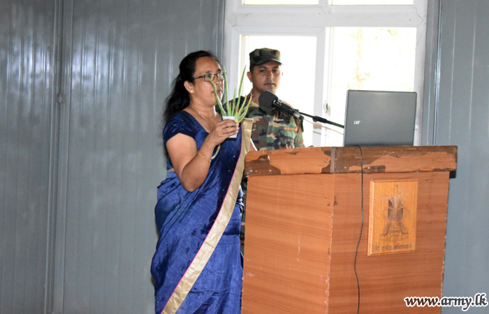 On a proposal of the Commander, Security Forces - Kilinochchi, Major General Vijitha Ravipriya and under the supervision of General Officer Commanding, 65 Division, Major General Wasantha Kumarapperuma, a workshop on ‘Promotion of Aloevera Cultivation’ in Kilinochchi area was conducted for 4 Officers and 49 Other Ranks, serving in Kilinochchi at the 65 Division Headquarters on Friday (4).