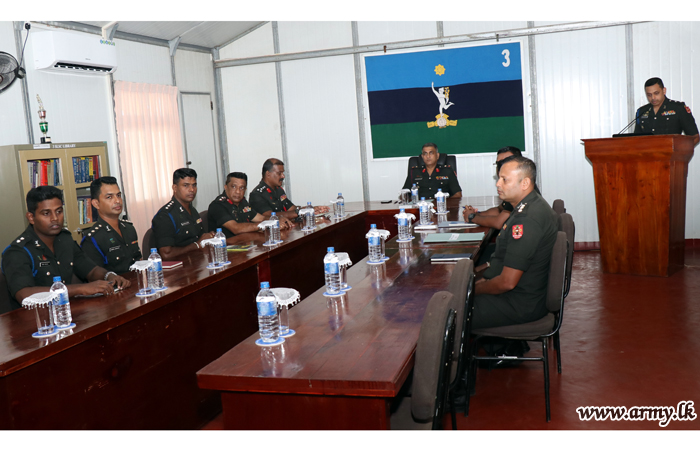 Commanding Officer, 3 SLSC after receiving the visiting SF-J Commander presented a comprehensive briefing on role and tasks of the unit. Afterwards, the visiting Commander addressed Officers and Other Ranks of the 3 SLSC. |