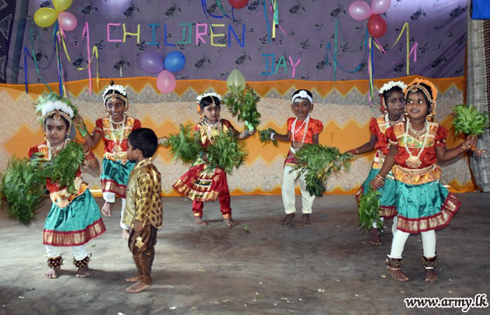 Troops of 651, 652 and 653 Brigades under the 65 Division of the Security Forces Headquarters -Kilinochchi (SFHQ-KLN), launched a number of welfare projects in their respective areas on account of the World Children’s Day on Tuesday (1).