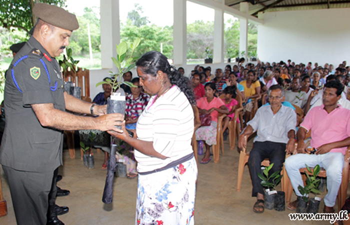56 Division troops facilitated a ‘Hadabima’ authority programme for distribution of jak saplings and fertilizer packets among low-income group civilians in Bogaswewa, Selalihinigama, Kokeliya and Nandimithragama villages during 3-4 October on the instructions of Major General H.P Seneviratne, General Officer Commanding, 56 Division.