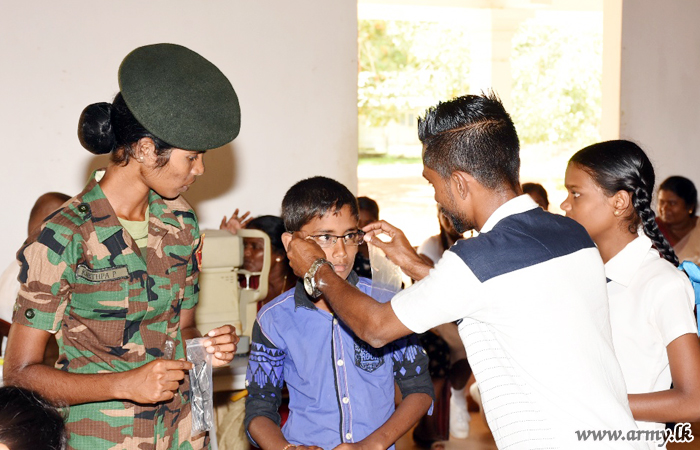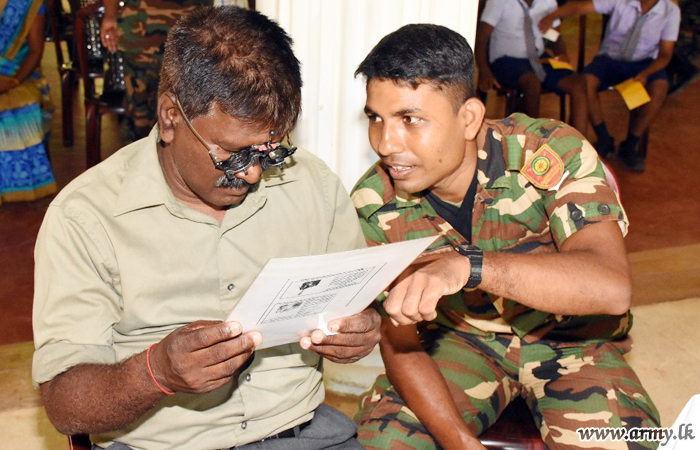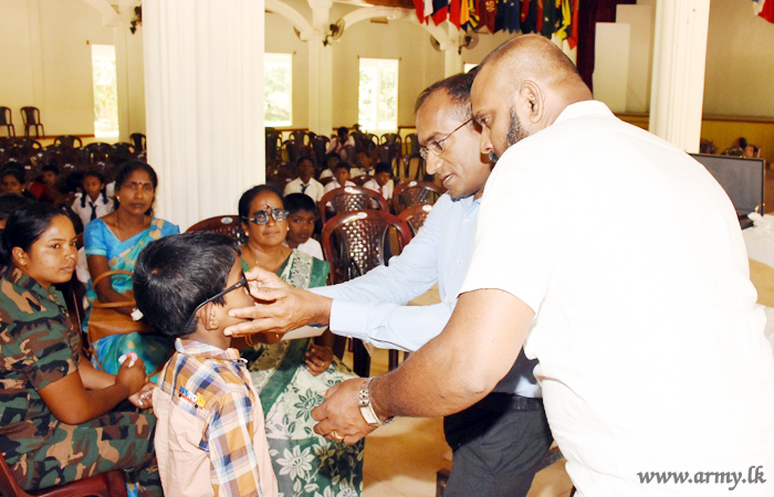 In response to a request made by Major General Vijitha Ravipriya, Commander, Security Forces - Kilinochchi, the association, called ‘Wethara Ape Kattiya’ in Polgasowita donated a stock of spectacles to the needy in Kilinochchi during an eye clinic organized at the ‘Nelumpiyasa’ auditorium on Saturday (12).