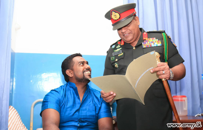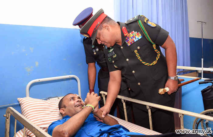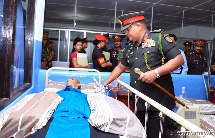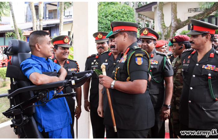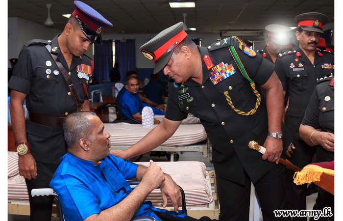 Just an hour after the day’s main highlight of the 70th Army Anniversary got underway in the Galle Face green, Lieutenant General Shavendra Silva, Commander of the Army attaching greater prominence, made a beeline to the Ragama Ranaviru Sevana where 93 disabled War Heroes are receiving rehabilitation and recuperation for the remainder of their lives.