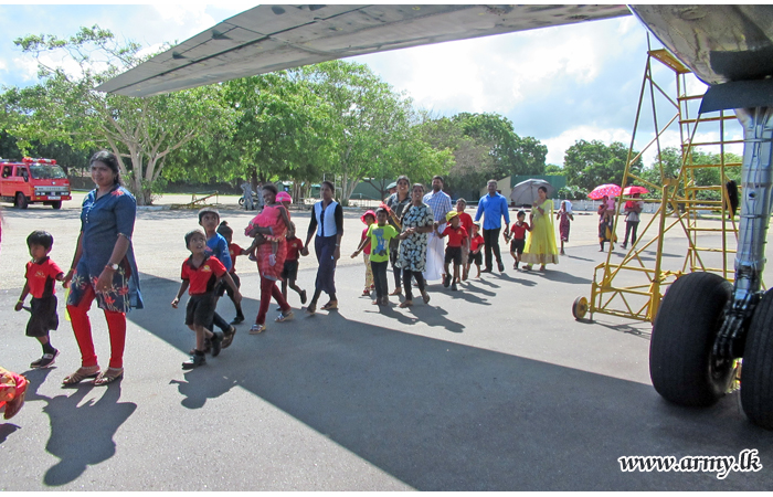 Security Forces Headquarters - Jaffna, facilitated one more visit of the pre-school students to Jaffna International Airport on Friday (18). A total of 48 students of 'Kannakai' pre-school and 'Thivya' Pre-School in Jaffna at Earlalai, accordingly visited the airport premises along with their teachers and parents to have a lifetime experience.