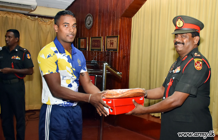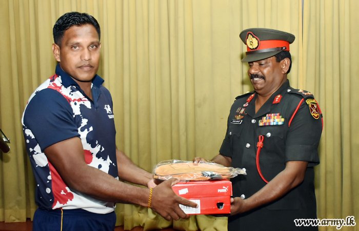 The Commander, Security Forces-West and the Chairman of the Army Athletic Association, Major General Mahinda Mudalige gifted new sports shoes to the athletes who won Gold medals in the recent 56th Army Athletic Championship Tournament.